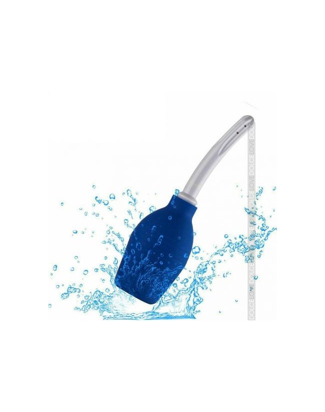 Una ducha anal con depósito de silicona de 310ml en color azul.