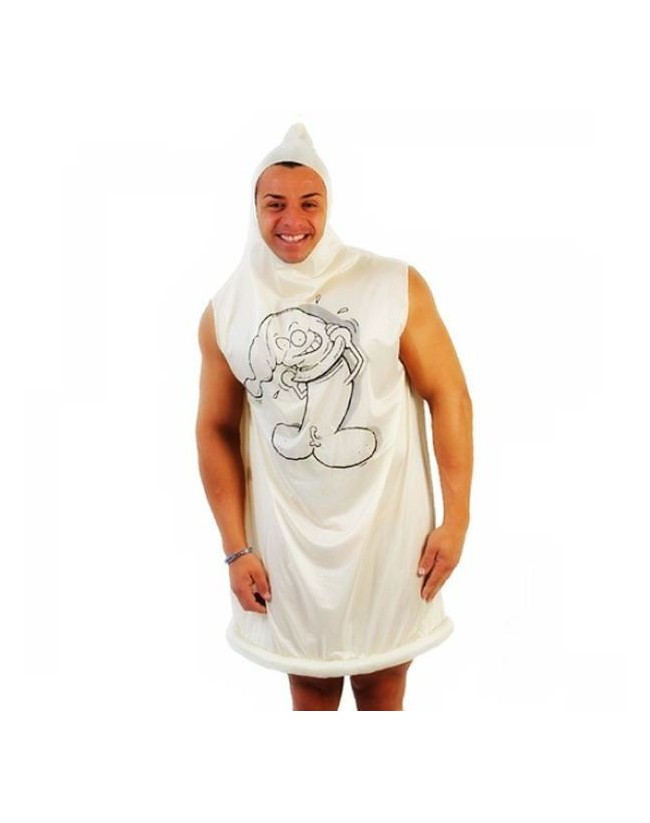 Fabuloso disfraz masculino de Preservativo. Compuesto por camisón largo con forma de CONDON.