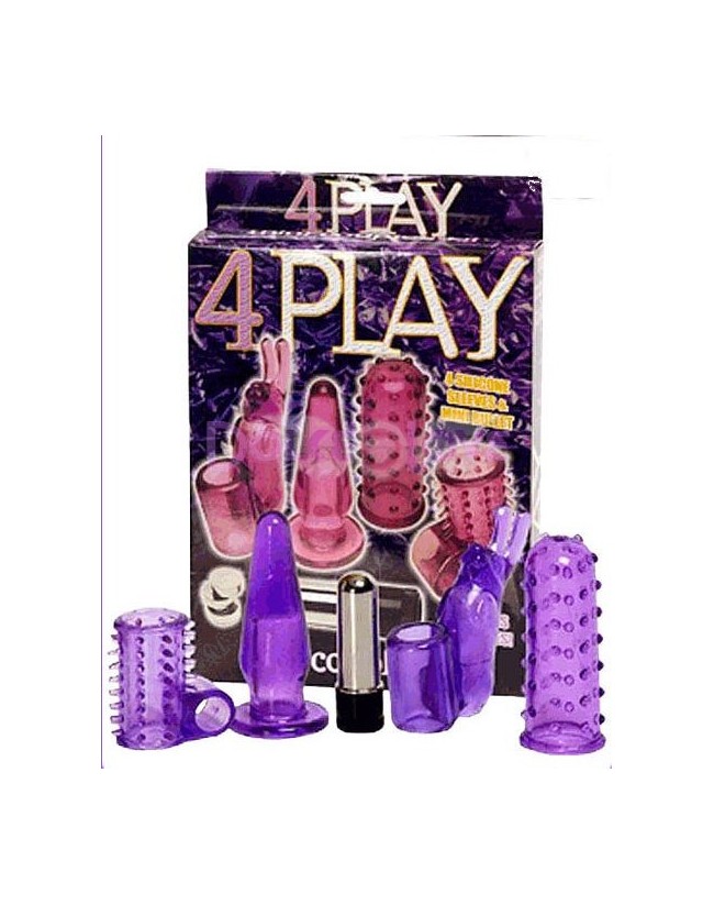 En la variedad está el gusto....Y el placer y la diversión. Recuperando el espiritu de los Juegos Reunidos en versión erótica, este kit vibrador para parejas ofrece muchas posibilidades para disfrutar de diversas y divertidas experiencias sexuales. Posee cuatro juguetes con diferentes funciones, hechos de una silicona suave y flexible, que se animan gracias a una bala vibradora, multipilicando las posiblidades y las sensaciones.