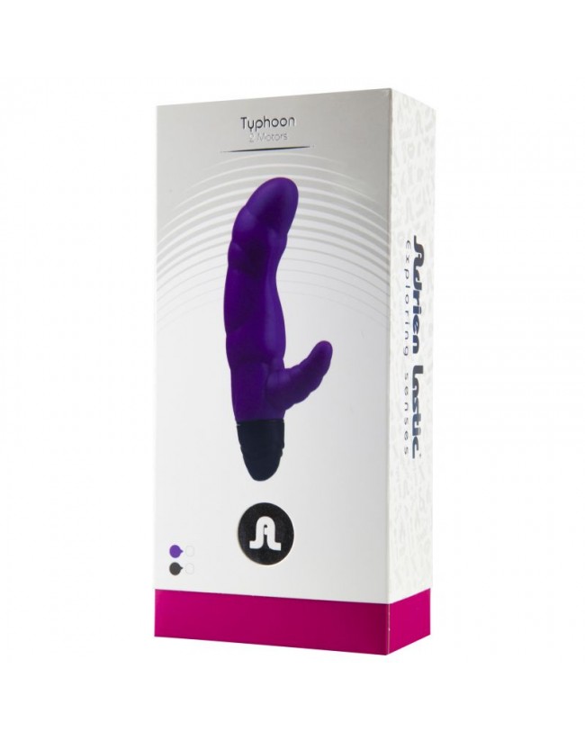 Vibrador Typhoone, confeccionado con 100% silicona de un tacto extra suave, tiene un diseño ergonómico con formas que se adaptan al cuerpo y relieves estimulantes. También es excepcional por su doble vibrador para el punto G y el clítoris.