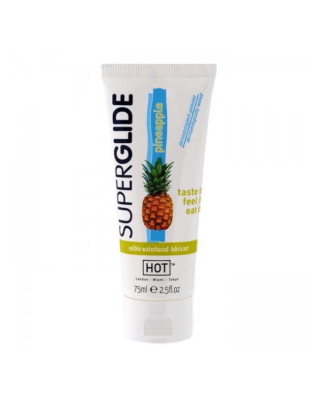 Lubricante base agua comestible con sabor a Piña (Pineapple), de la marga Hot. Es de alta calidad, llevan la certificación CE y cumplen las directrices RoHS.